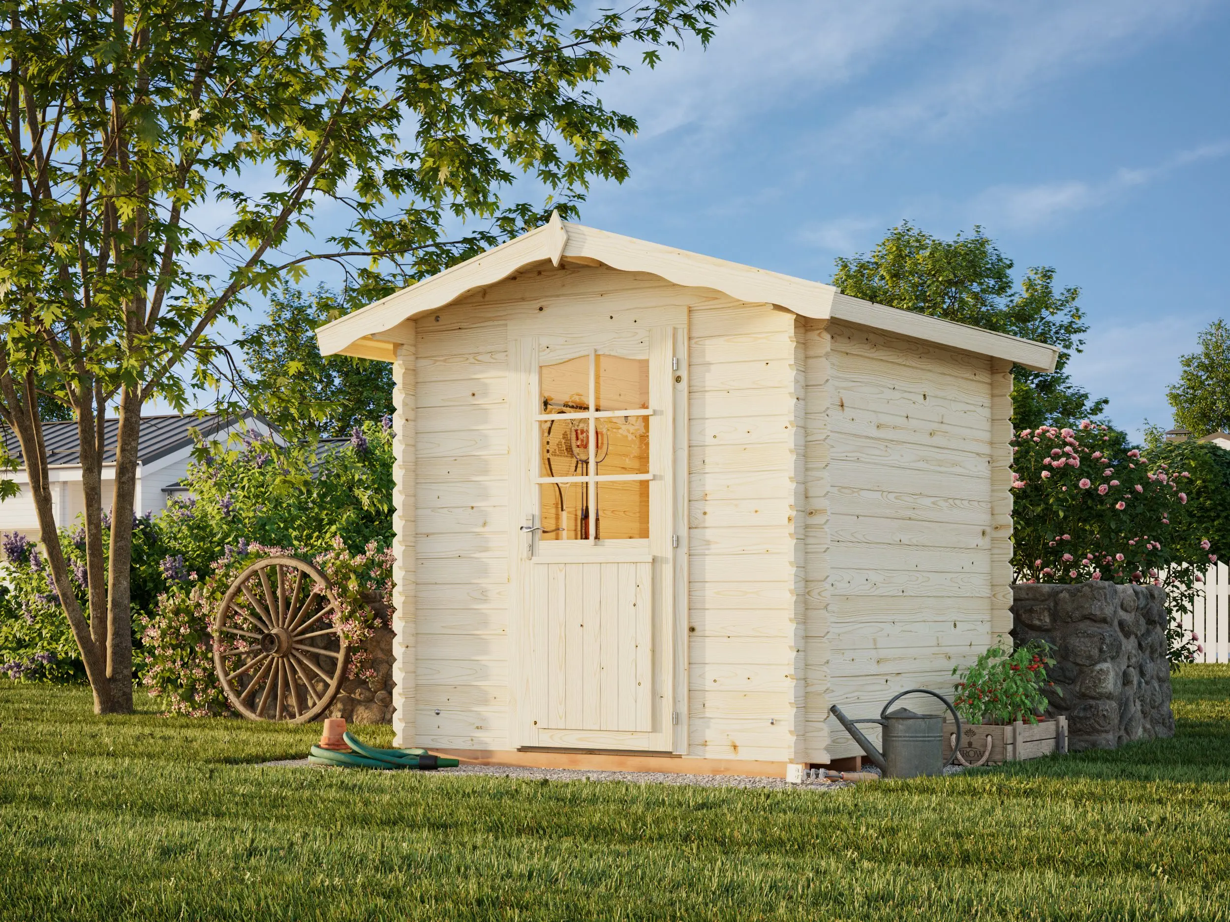 Asfáltico (1 rollo), tégola asfáltica (3 paquetes), canalones, puerta adicional.
