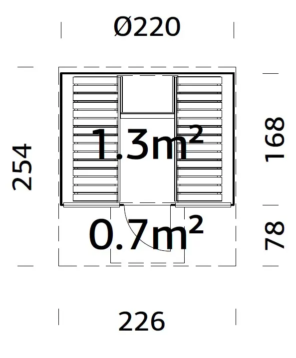 - Superficie construida: 1,3 m²